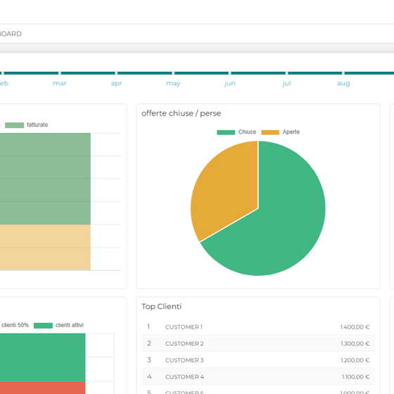 Niente più file complicate o report difficili da leggere. Le dashboard personalizzabili di ELON trasformano numeri complessi in grafici chiari, tabelle intuitive e report sintetici. Così, in pochi secondi, puoi individuare trend, monitorare gli indicatori chiave e rispondere alle domande che contano per il successo della tua azienda.